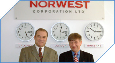 Norwest Corporation, London Office, UK, 2002With Richard Thompson, my co-director, at the newly opened Norwest Corporation’s office in London.Back to Top