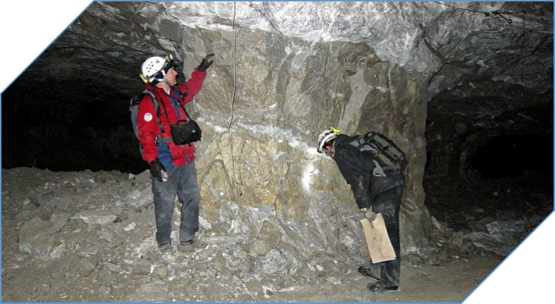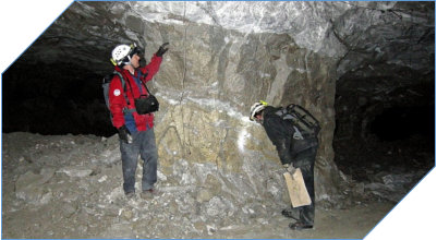 Black Angel Zinc-Lead Mine, Greenland, 2007Checking the ore left in the pillars of the old underground mine.Back to Top