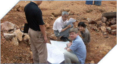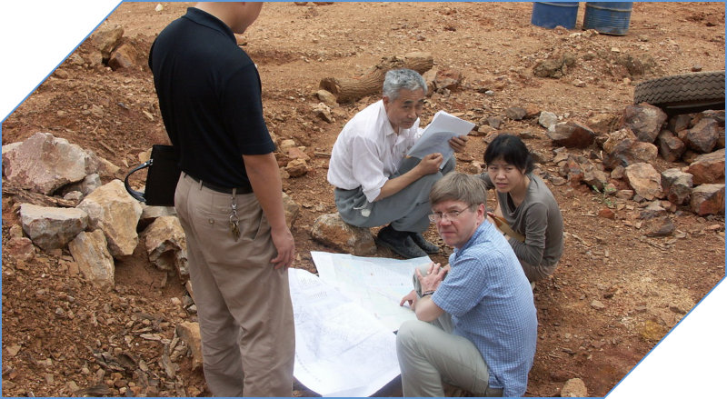 Zhang MuShan gold prospect, Tong Ling (Anhui), China, 2005Discussing next exploration steps of our JV with local geologists.Back to Top